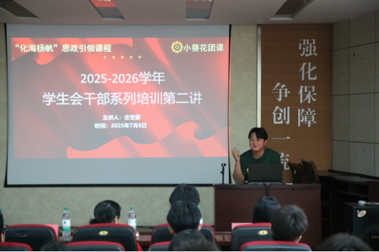 学生会干部系列培训会在J2-10学院报告厅拉开帷幕。此次培训面向全体学生会成员举办,由学院团委书记兼学工办主任易凡主持,特邀学院优选计划辅导员、2023级研究生庄世豪担任分享嘉宾。作为系列培训的第一讲,庄世豪做了充分的准备。他从自己在学生会担任干事到部长到副主席的成长路径谈起,结合兼任班级班长的本科生涯,侃侃而谈,分享了进入色情网站
