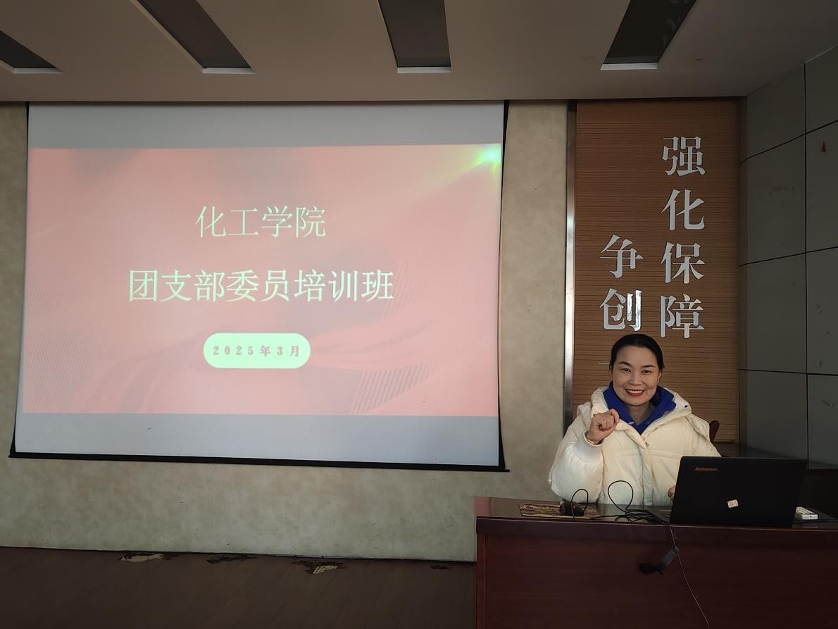 在J2-104举办团支部委员培训班,院团委书记易凡担任主讲,各班级团支部委员参加。