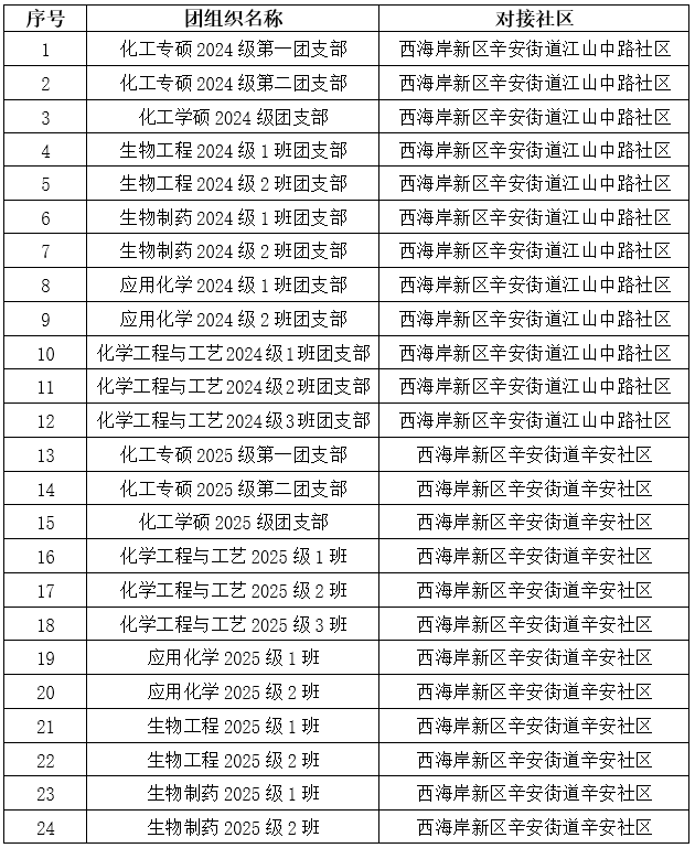 具体团支部与对接社区情况如下: