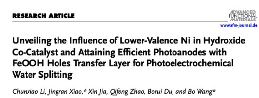 肖静冉&王博等人在Advanced Functional Materials杂志发表光电催化水分解助催化剂调控最新成果