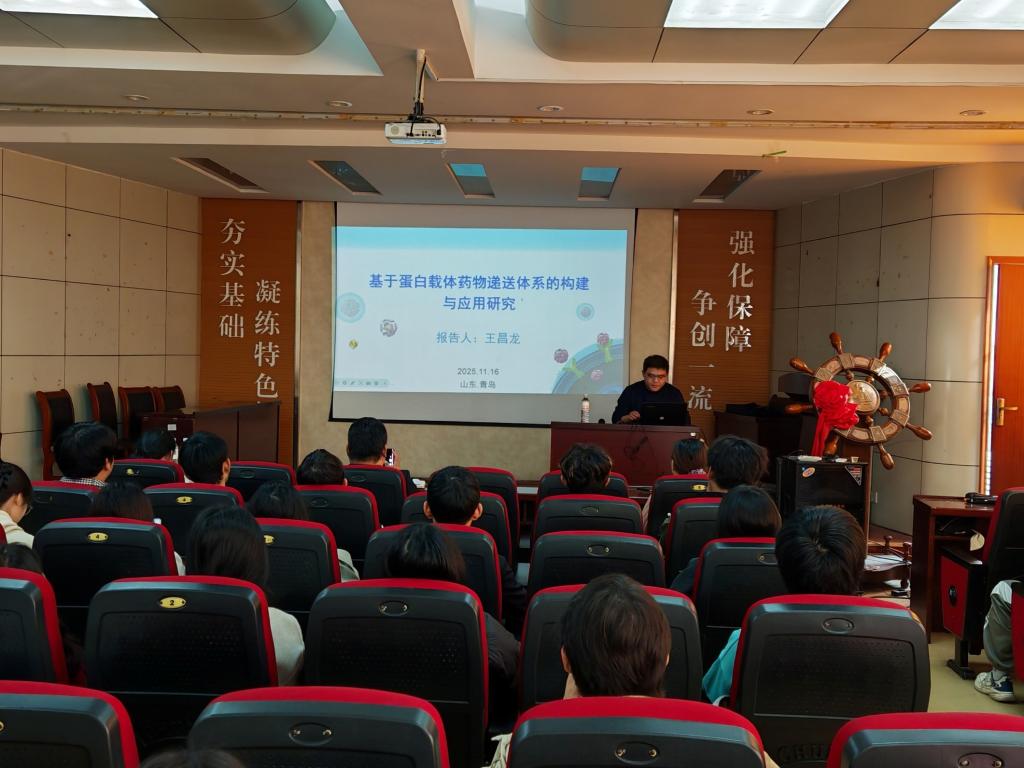 2025年11月16日上午,化学与生物工程学院生物工程专业2011级优秀校友、山东第一医科大学王昌龙教授回访母校,并在J2-104报告厅为师生带来题为《基于蛋白载体的药物递送体系的构建与应用研究》的学术报告。报告会由生物工程系副主任赵辉教授主持。