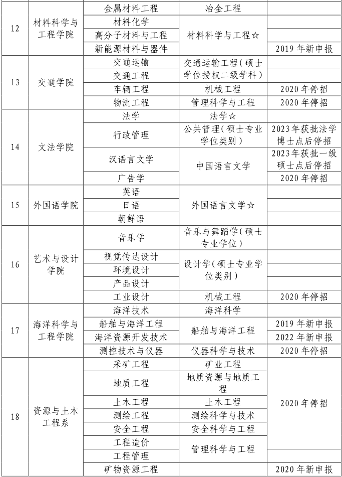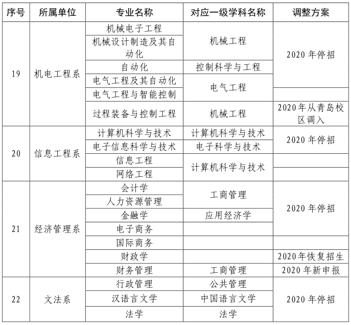 6.错位设置校区间专业。停招泰安与青岛校区间重复设置的专业,调整青岛校区部分专业到泰安校区,实现校区间专业错位发展。